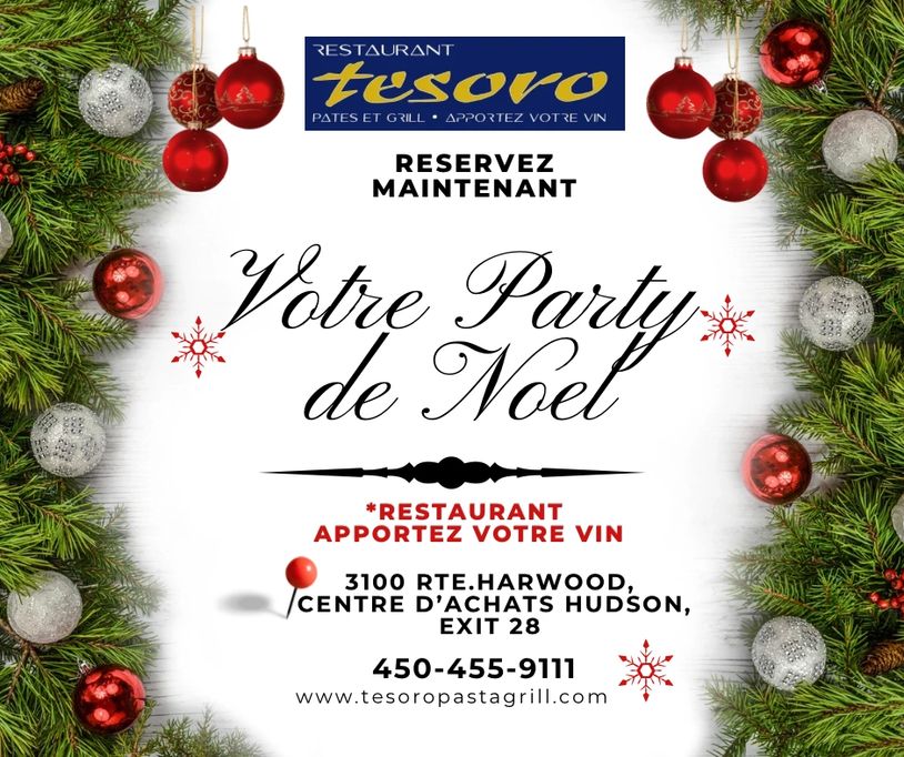 Chez TESORO PATES & GRILL, nous apportons le cœur de l’Italie dans votre assiette. Notre restaurant se consacre à la préparation de pâtes et de plats de veau préparés avec les meilleurs ingrédients, afin que chaque repas soit une véritable expérience culinaire. Situé dans la belle région d’Hudson, à Saint-Lazare, au Québec, nous vous invitons à vous détendre dans notre atmosphère chaleureuse et accueillante. Que vous ayez envie d’une sauce à pâtes maison ou de fruits de mer, ou un grillade, notre menu a quelque chose pour tout le monde. Rejoignez-nous pour une expérience culinaire mémorable!